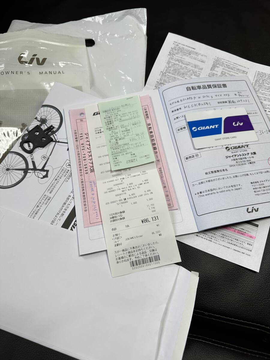 兵庫県三田市より、XXS.ジャイアント、GIANT.エスケープディスク、Liv.Escape DISK.新車購入、あまり使ってません、油圧ブレーキ、