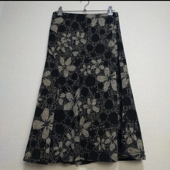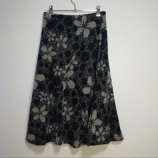 Product name: スカート ひざ丈スカート 花柄 総柄 韓国製 ストレッチ○ ウエストゴム 黒 ブラック