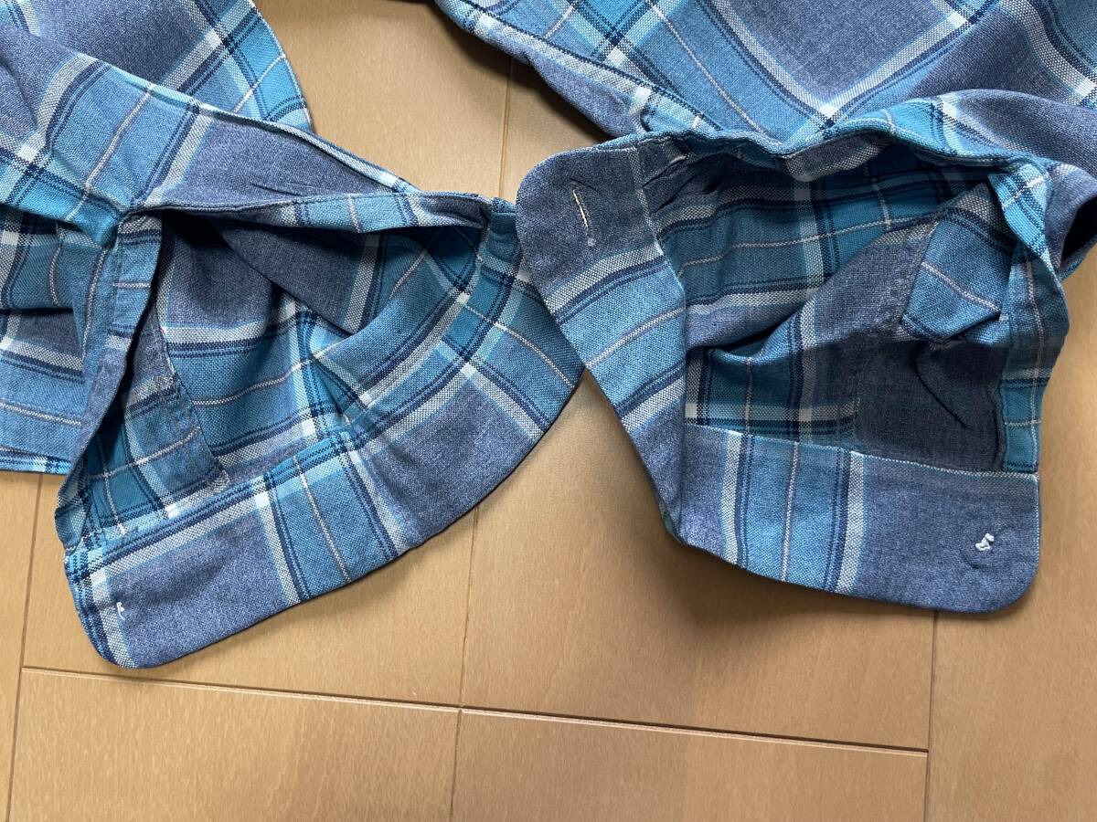 50年代頃のTowncraftのオープンカラーレーヨンシャツです。水色・グレー・白・黒と配色パターンのよい珍しいチェックのパターンです。ウールではこういった配色はたまに見かけますが、レーヨンとなるとこの配色は珍しいと思います。また、襟芯なしというのもうれしい点だと思いますし、肩や脇はもちろんダブルステッチである点もうれしいところです。また、程度もほとんど着用感のない個体です。こういった古いレーヨンシャツ古いシャツはアメリカ人ディーラーにも人気であり、値段があがる一方です。なかなかこのような配色の良いレーヨンシャツは少ないので、この機会に是非。サイズ表記はMで、実寸は肩幅46cm、身幅55cm、着丈66cm、袖丈(肩から袖先まで)60 cmです。素人採寸のため、多少の誤差はお許しください。右腕裏にピンホールはありますが、それ以外は着用感のほとんどない、非常に綺麗な状態です。ボタンは全てオリジナルです。神経質な方の入札はご遠慮ください。ノークレーム、ノーリターン(返品不可)です。明らかな偽物以外はリペアやリサイズ、リメイクといった理由での返品は受け付けません。