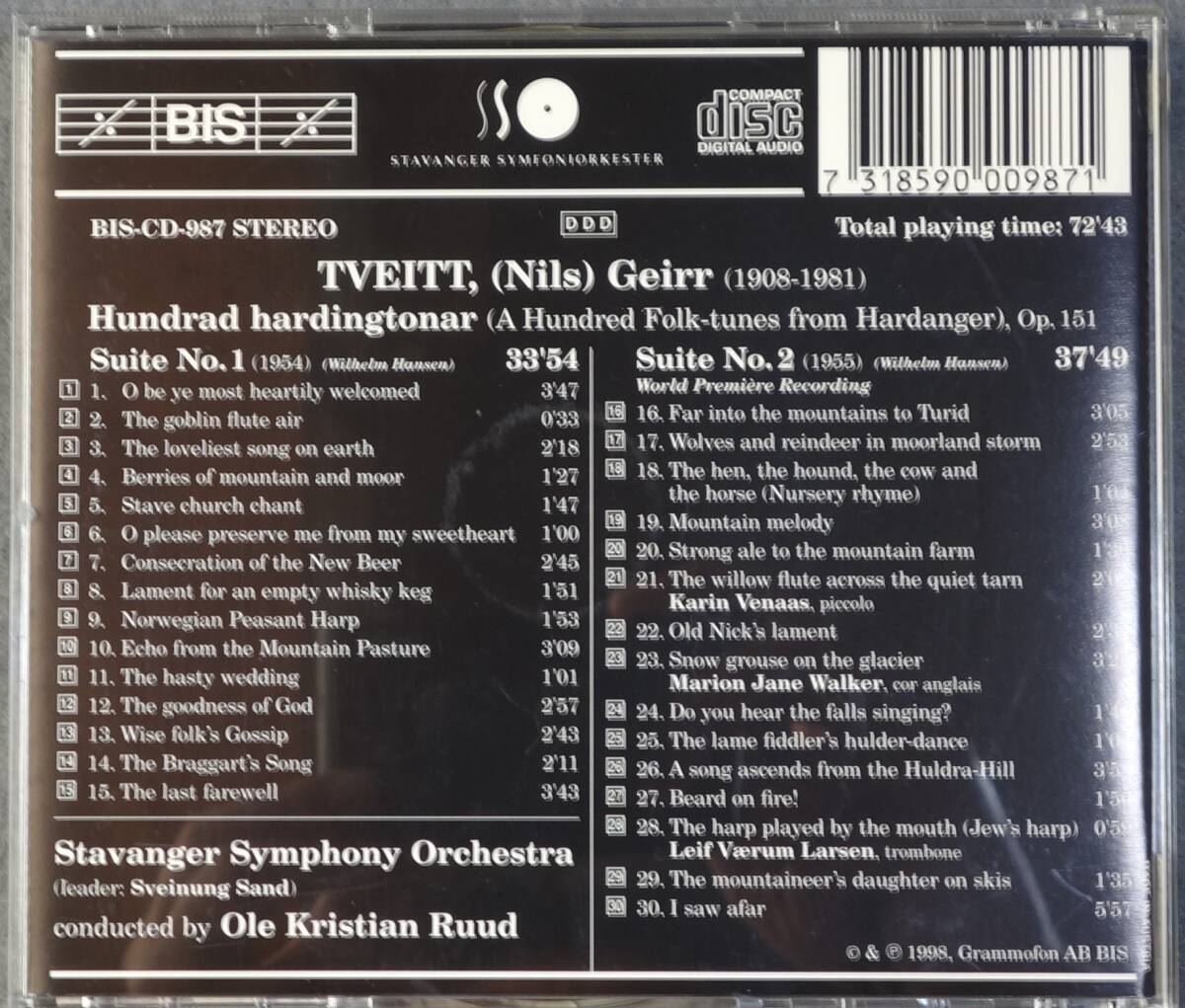 Product name: トヴェイト:ハルダンゲルの100の民謡 組曲第1番、第2番/ルード指揮スタヴァンゲル響/BIS