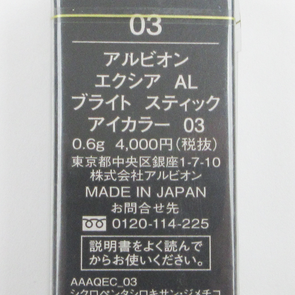 Product name: アルビオン エクシア AL ブライト スティック アイカラー #03 未開封 C572