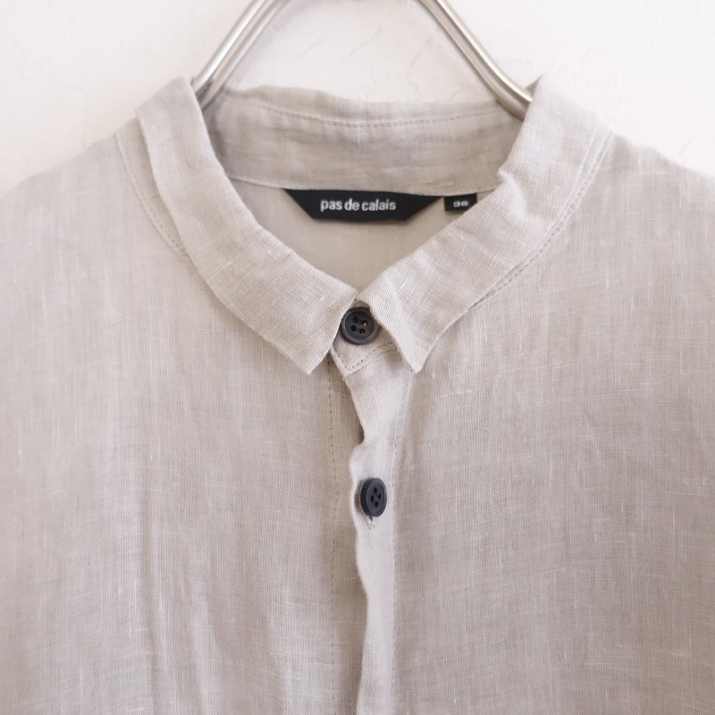 【定価3.1万】パドカレ pas de calais *60リネンブラウス*36グレージュ染オーバーサイズbigワイド(33-2406-39)【20G42】