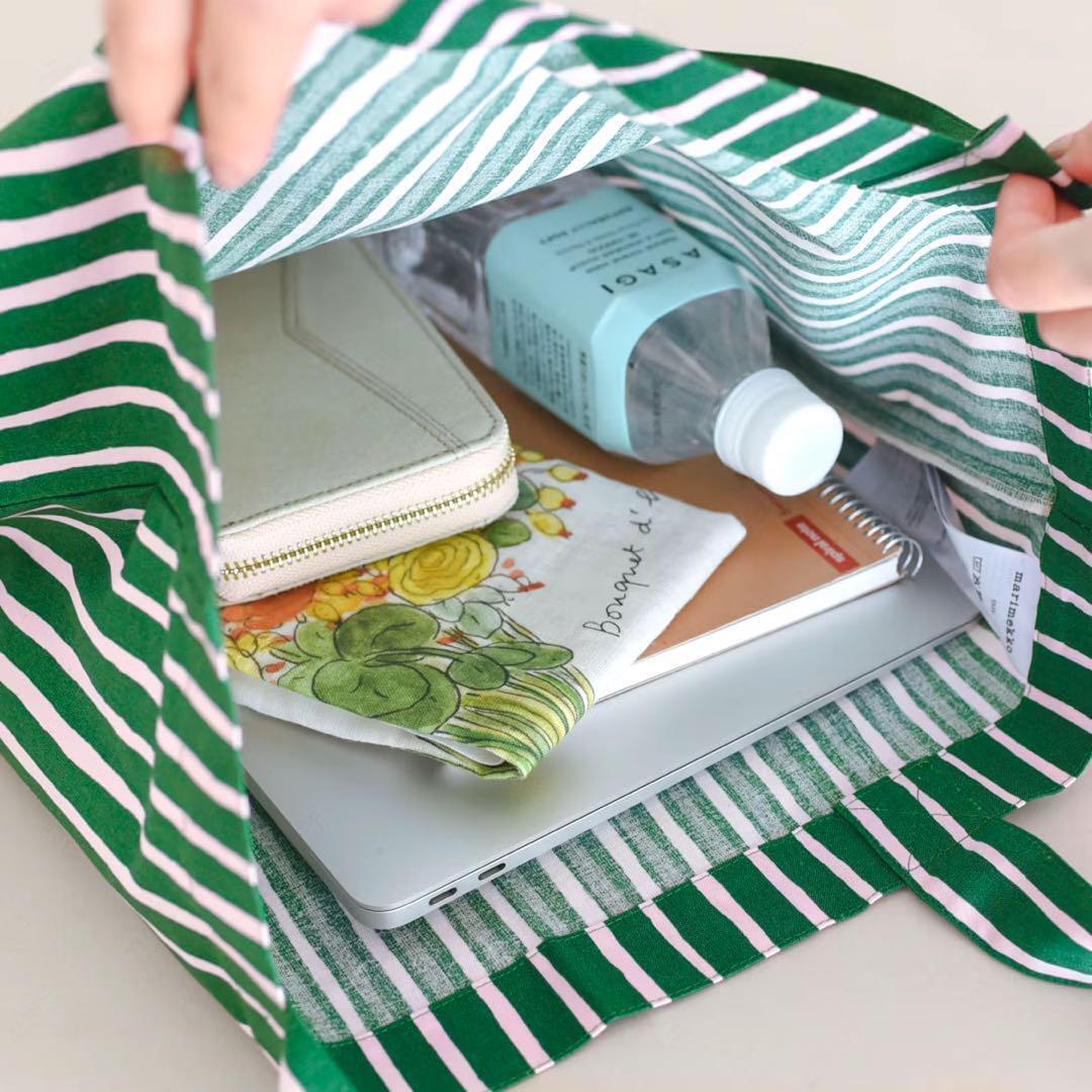 春めく限定色MarimekkoマリメッコPiccoloトートバッグリーン×ピンク+300円でギフトバッグ付