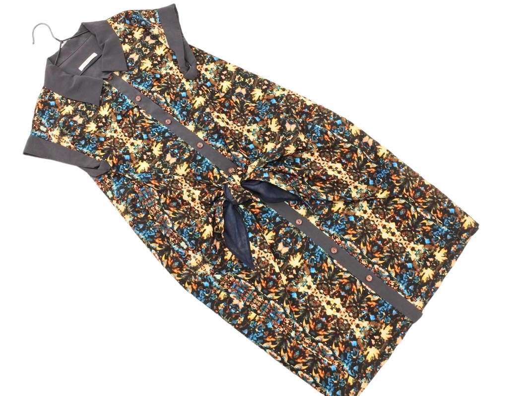 Product name: ネコポスOK OPAQUE オペーク 総柄 チュニック ワンピースsizeL/黒xチャコールx紺 ■◆ ☆ feb9 レディース