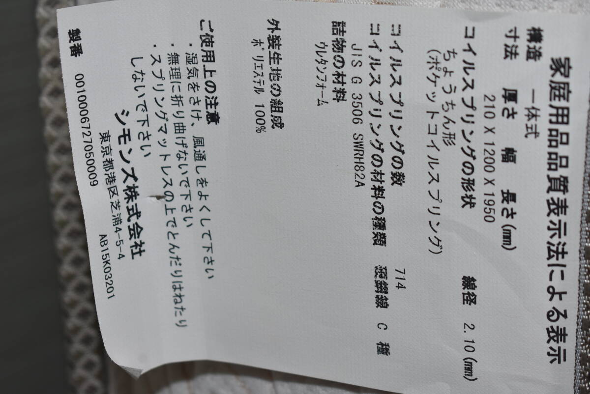 マットレス・・・・・厚さ210x幅1200x長さ1950㎜