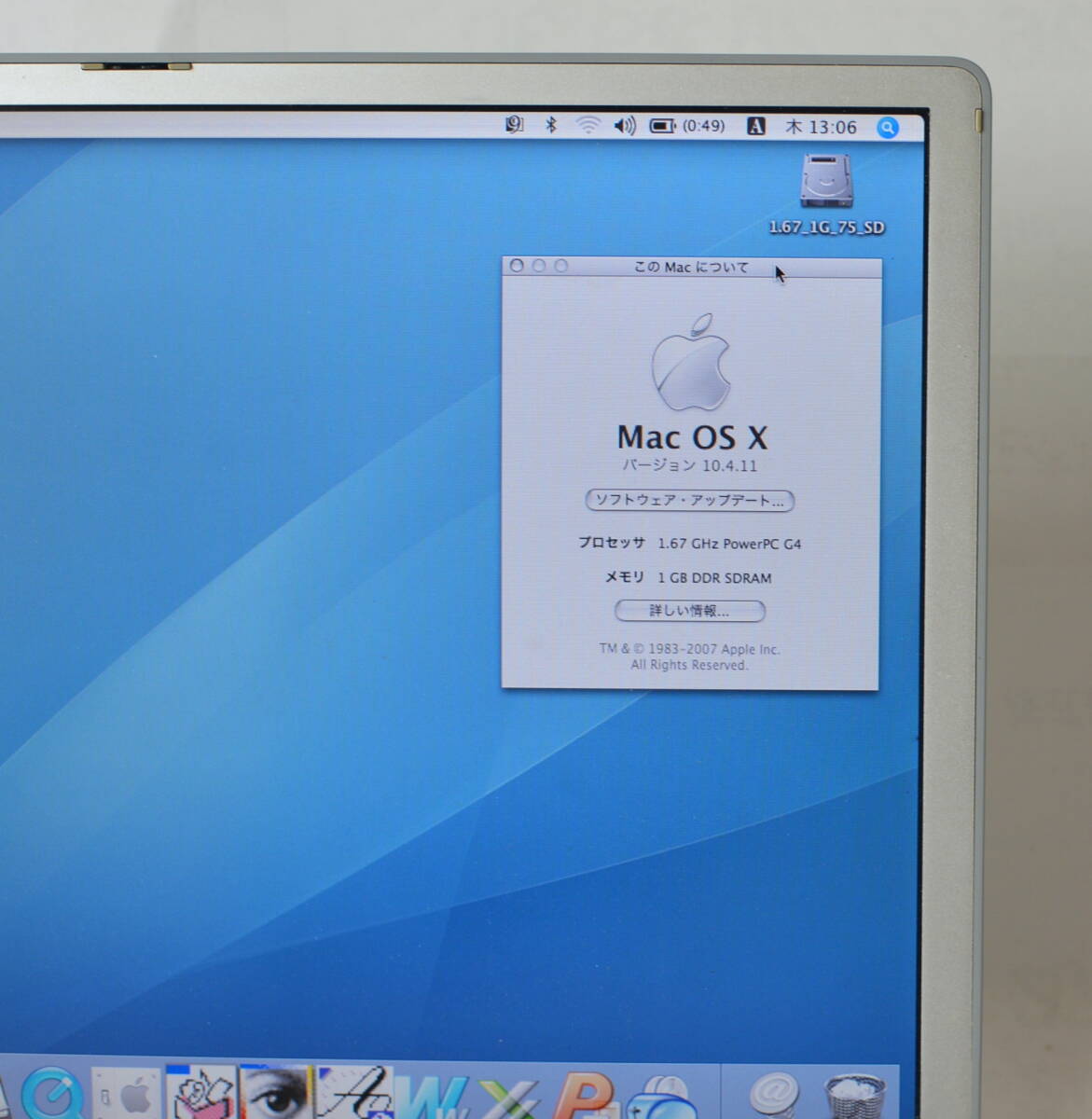 Product name: PowerBook G4 AL 15inch 1.67GHz A1106 1GB/75GB/SD/AM/BT OSX10.4.11/OS9.2.2クラッシック環境