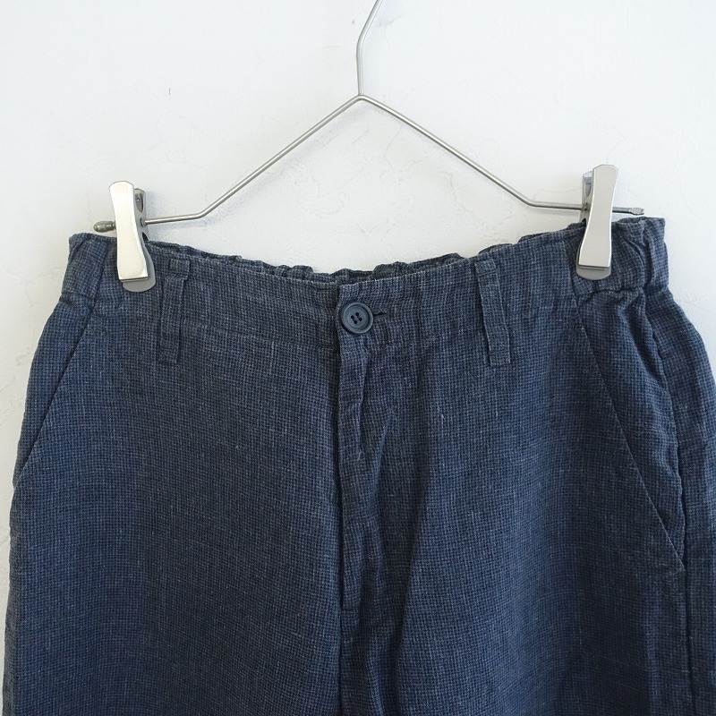 Product name: 【定価2.6万】パドカレ pas de calais *リネンチェックワイドパンツ*36麻ネイビーグレーゴム製品染め(25-2505-41)【82E52】