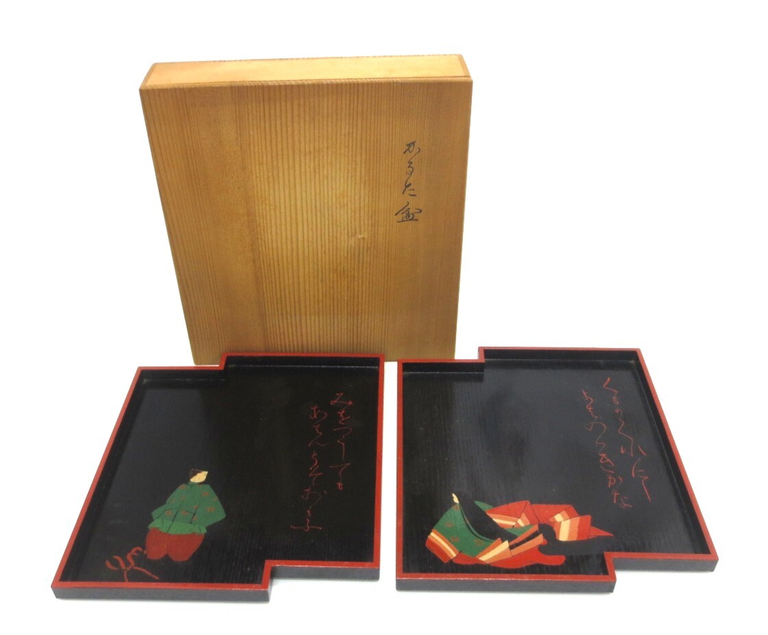 Product name: 【5-241】池ノ浦大紀?かるた盆 二膳 色蒔絵 百人一首 和:食器 和風