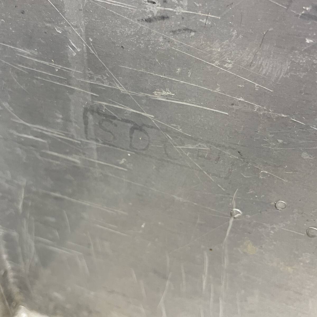 厚みのある金属板をリベットでしっかりと組み上げた構造で、両側に取手金具が備えられています。終戦後に戦闘機を作る材料で作成されたものです。