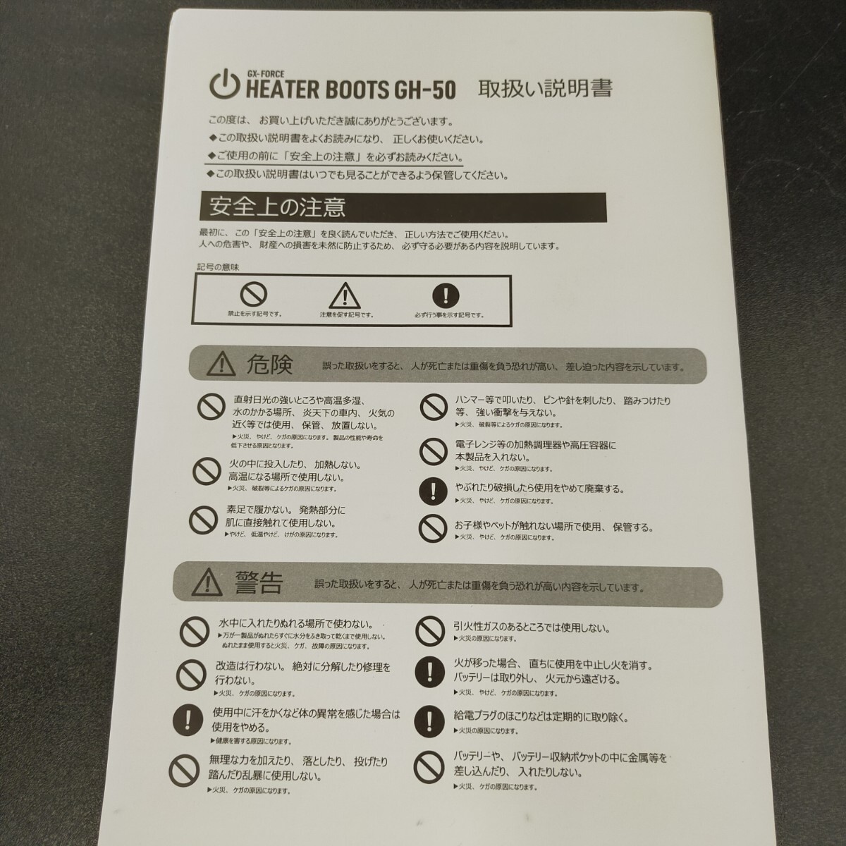 ・動作確認のため、バッテリーの袋を開封しました。ブーツ内が暖まるのを確認しました。