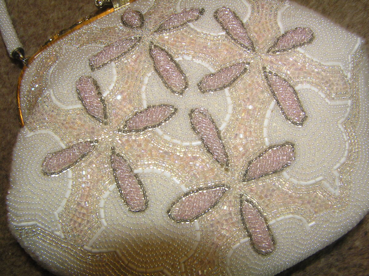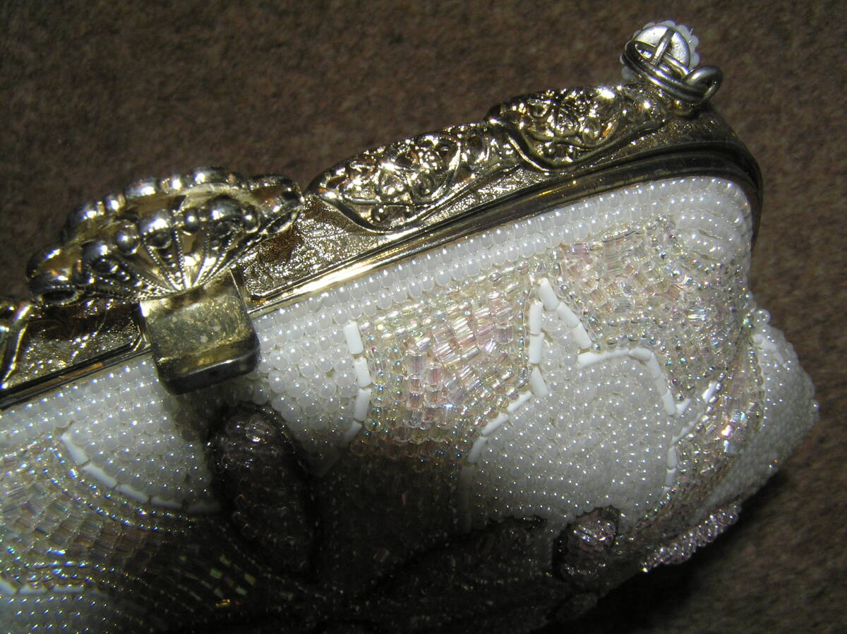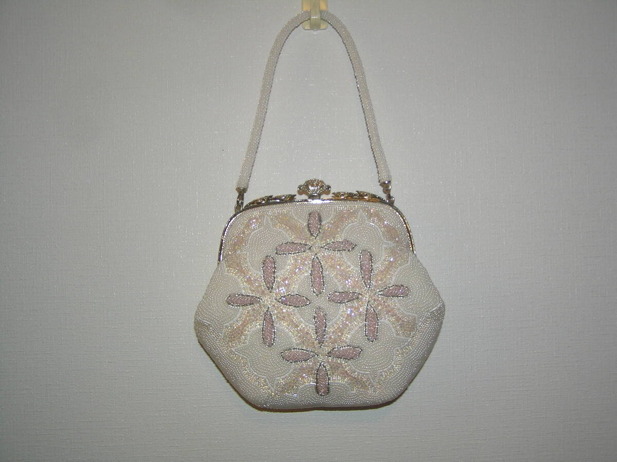 どんぶらこ★小振りの可愛いビーズバッグ★白・ピンク系★状態良好