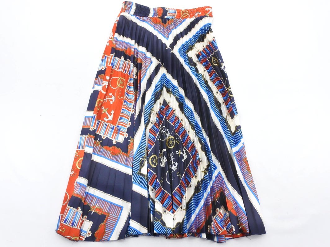 Product name: ZARA ザラ アンカー柄 総柄 ロング プリーツ スカート sizeXS/赤x紺 ■■ ☆ ffb0 レディース