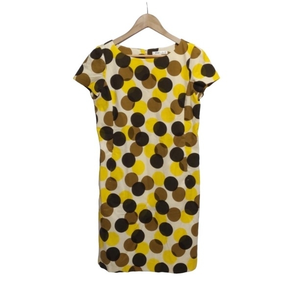 Product name: 49アベニュージュンコシマダ 49av.Junko Shimada サイズ40 M - アイボリー×ブラウン×イエロー レディース 半袖/ひざ丈/ドット柄