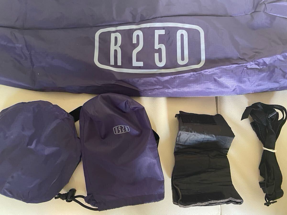 R250 縦型軽量輪行袋 江戸紫 エンド金具、フレームカバー・スプロケットカバー・輪行マニュアル付属