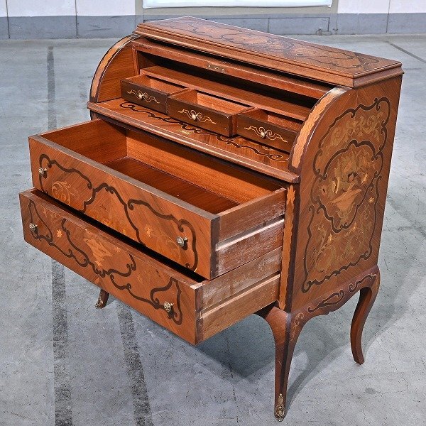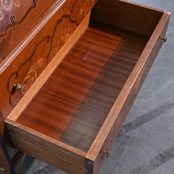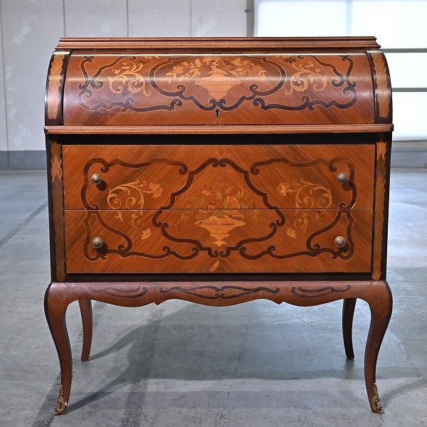 Product name: イタリアアンティーク ロールトップビューロー ローズウッド材 木象嵌 真鍮 猫脚 チェスト 収納 引き出し ライティング ビンテージ