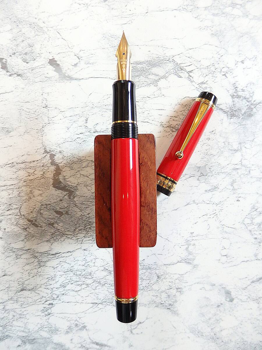 ◆【ほぼ未使用】【希少】パイロット 朱漆塗り万年筆 Custom845 ペン先:14K585ソリッドゴールド・フォルカンFA