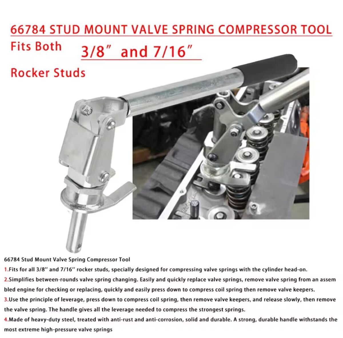 ロッカーアームのスタッドに固定して使用するタイプのバルブスプリングコンプレッサーになります。