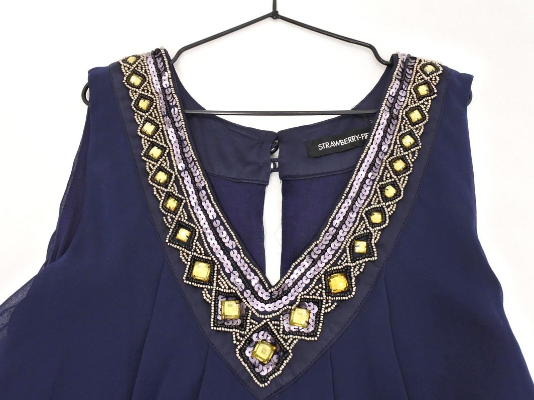 Product name: STRAWBERRY-FIELDS ストロベリーフィールズ シフォン スパンコール ビーズ ノースリーブ ワンピース 紺 ■◆ ☆ fga7 レディース