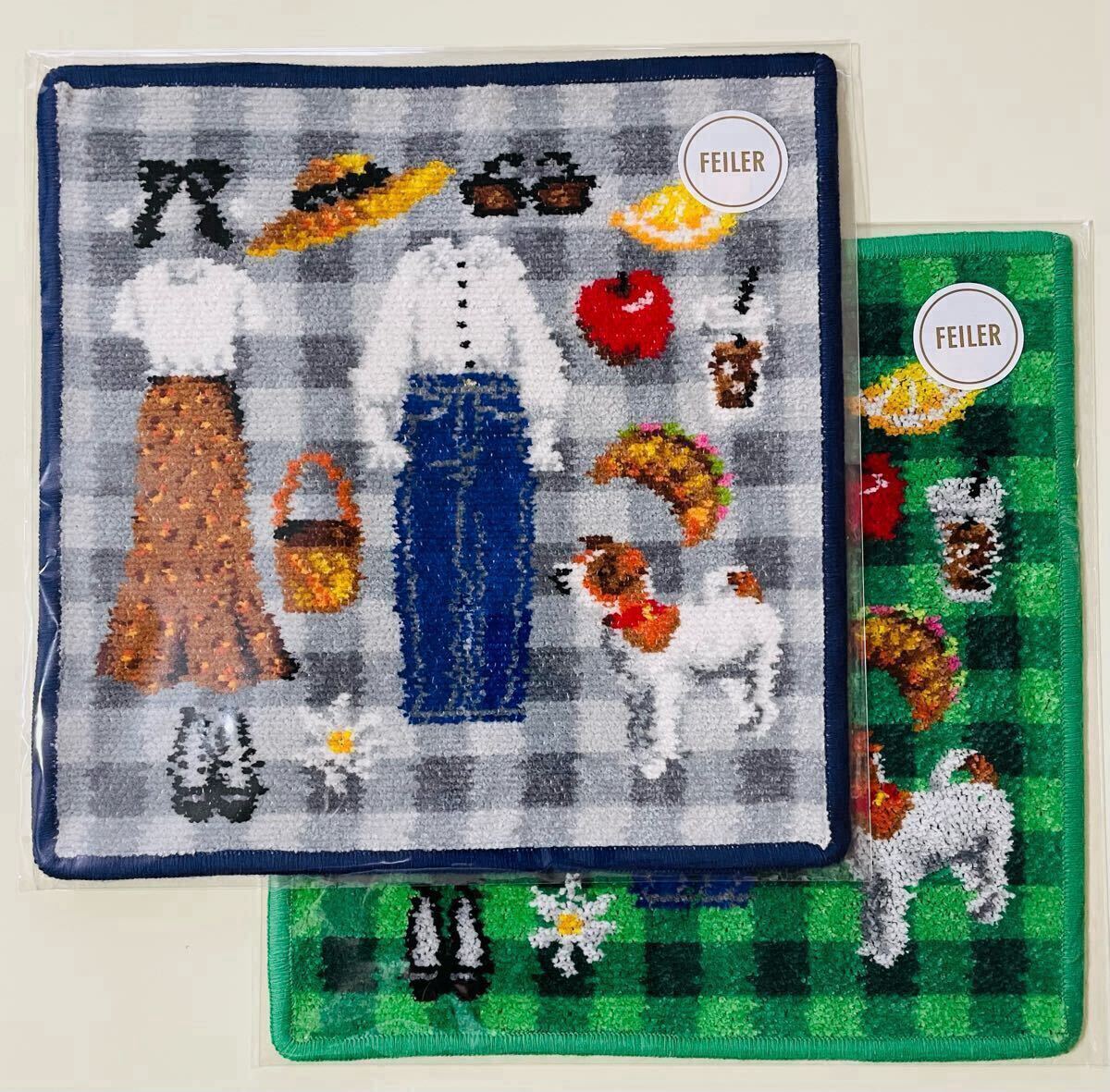 FEILER PIQUE-NIQUE IENA ハンカチ グレーとグリーン 2枚 イエナ別注 フェイラー イエナアンファン