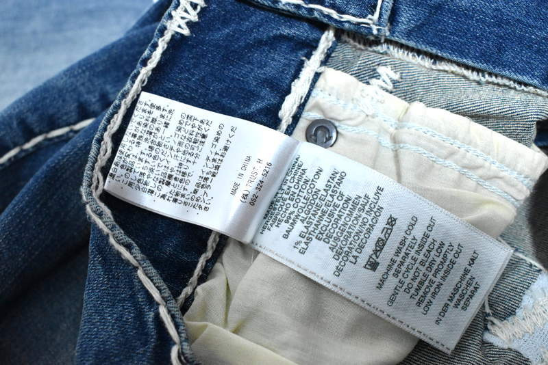 【サイズ】30・・・ウエスト約82cm、股上約26.5cm、股下約85.5cm、腿幅(股下10cmでの計測)約27cm、裾幅約21cm。