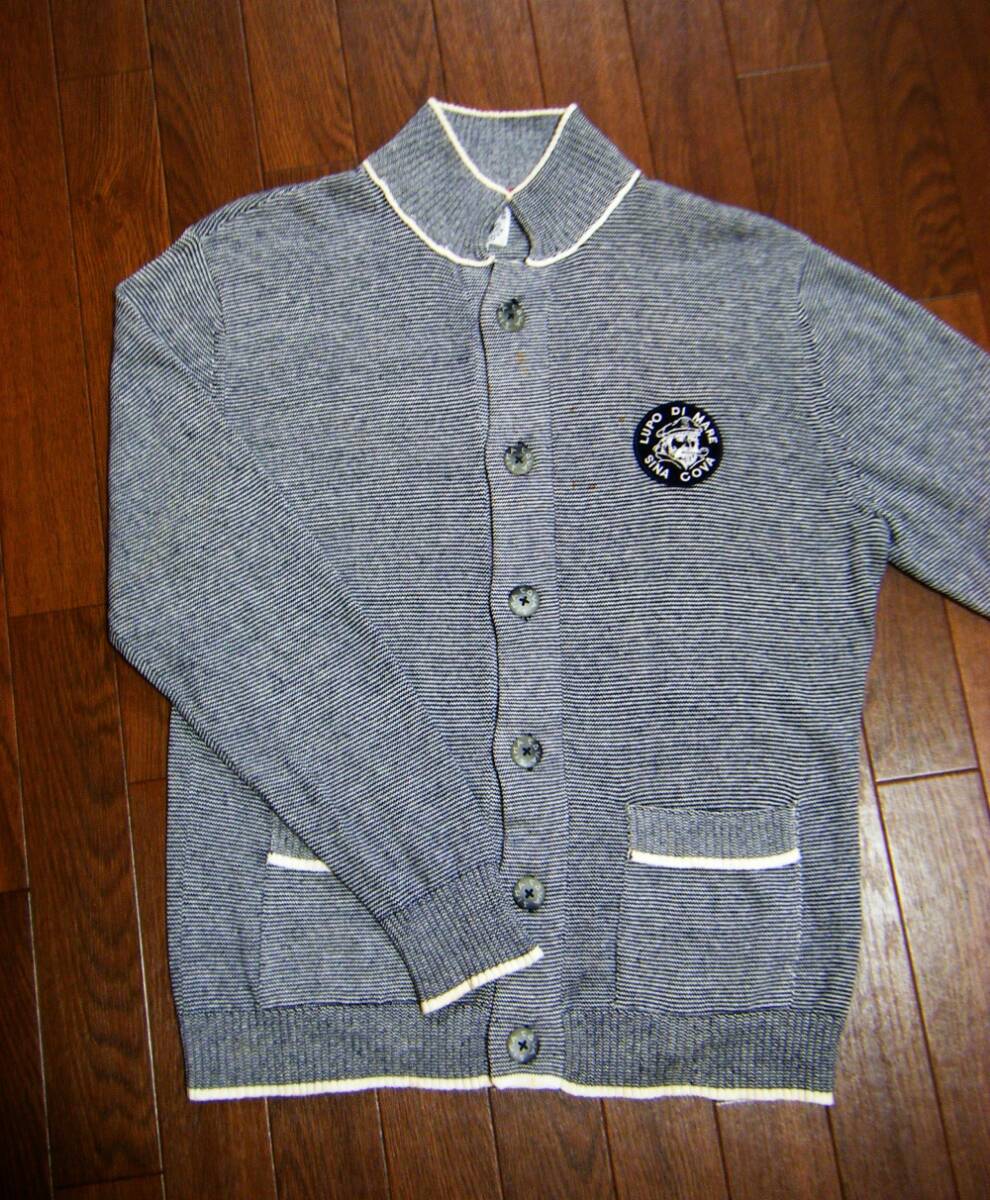 Product name: 麻混/超伸縮〇シナコバ SINA COVA ニットジャケット L 薄手 ボーダー 刻印ボタン 刺しゅうエンブレム 白色&ネイビー