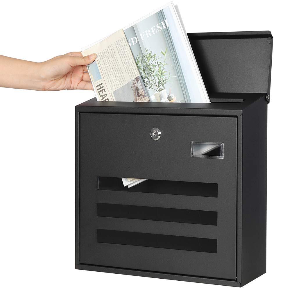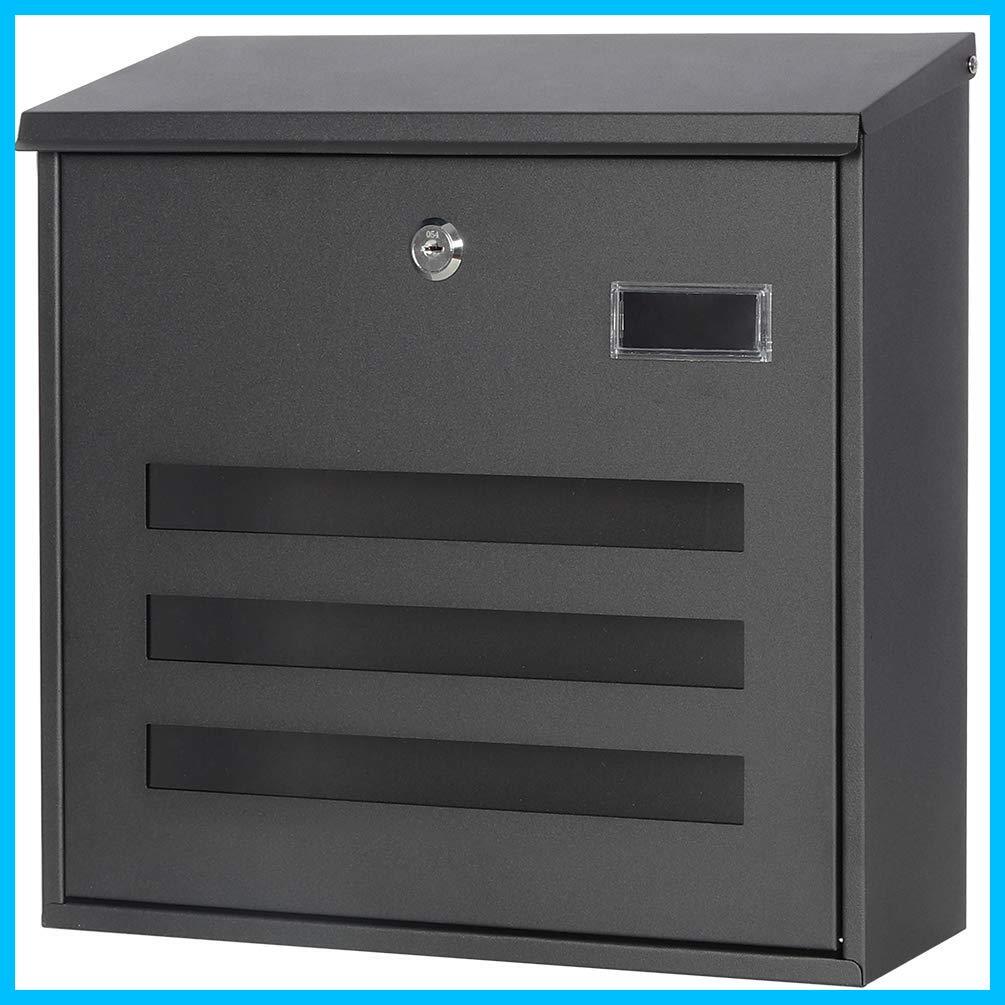 Product name: 【特価商品】キーロック 大型 ポスト 郵便受け ブラック 壁掛け メールボックス 34.5x33x11cm(918-Black)