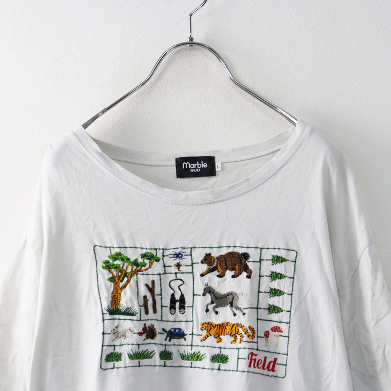 大きいサイズ マーブルシュッド marble SUD アニマル刺繍 Tシャツ L/グレー系 トップス カットソー プルオーバー 半袖【2400014505504】