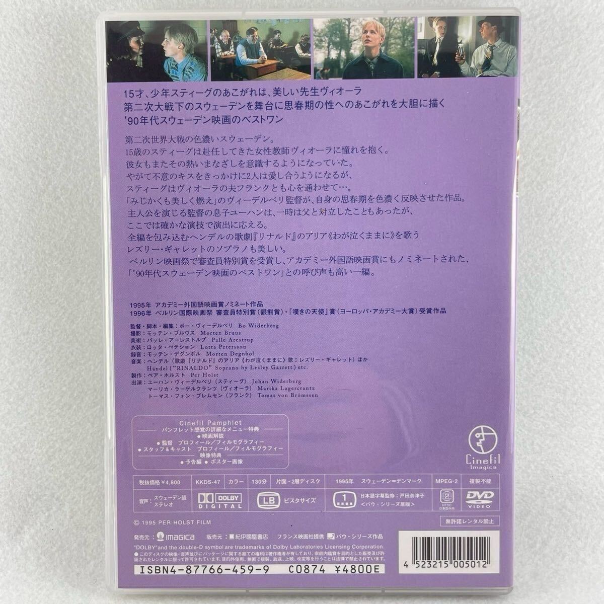 【概要】第二次世界大戦に怯える、中立国のスウェーデンが舞台。15歳のスティーグは、赴任してきた女教師ヴィオーラに憧れを抱く。彼女もまた、猥雑な冗談を口にする生徒たちの中で、熱く見つめる彼の存在が気になっていた。やがてスティーグはヴィオーラにキスし、それをきっかけにして二人は愛し合うように。だがスティーグは、彼女の夫フランクとも親しくなってしまう……。96年ベルリン映画祭審査員特別賞を受賞した、美しい青春映画。「みじかくも美しく燃え」の名匠B・ウィデルベルイの遺作となった。