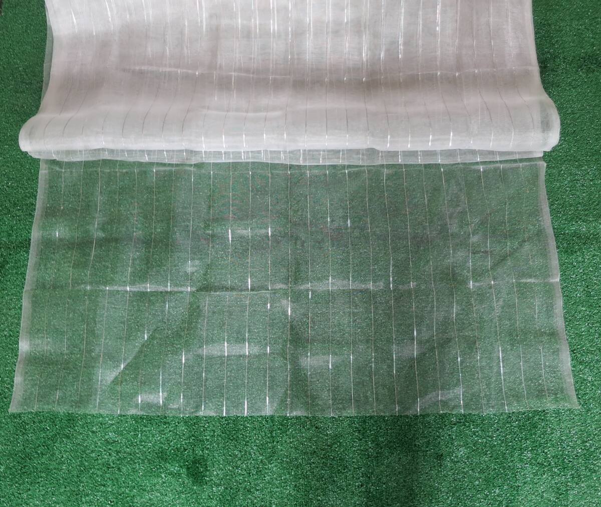 ★銀糸の特徴:害虫はキラキラした光の反射を苦手とするため、一定間隔で銀糸が張     られた防虫ネットのほうが一般に防虫効果が高いとされています。
