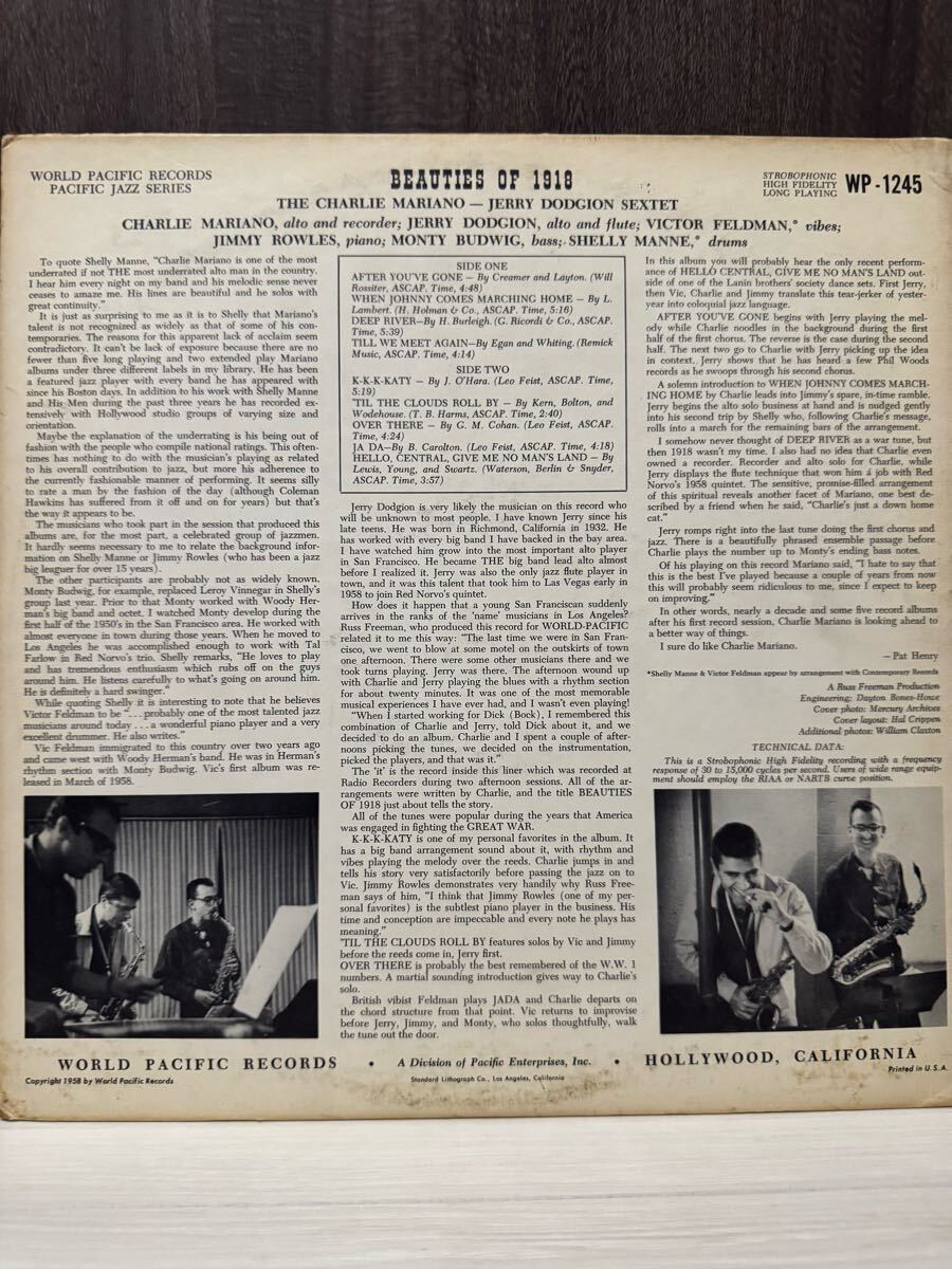LPレコード Beauties of 1980 The Charie Mariano & Jerry Dodgion Sextet