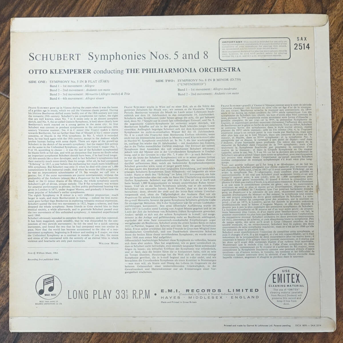 極美!英SAX2514 B&S シューベルト交響曲第5&8番 クレンペラー
