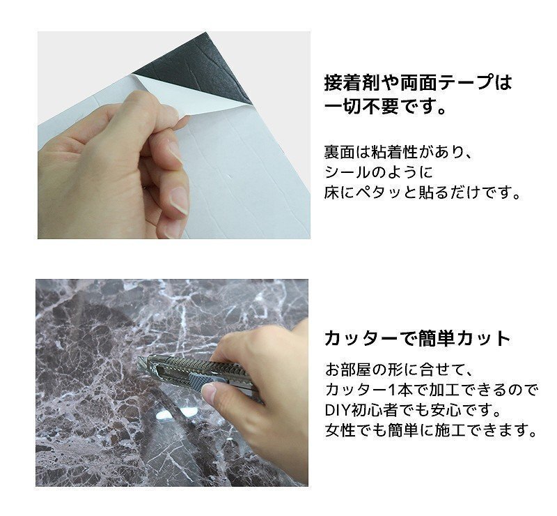 ■裏面は粘着性があるので、接着剤なしで施工可能。 シートをはがして貼るだけ!