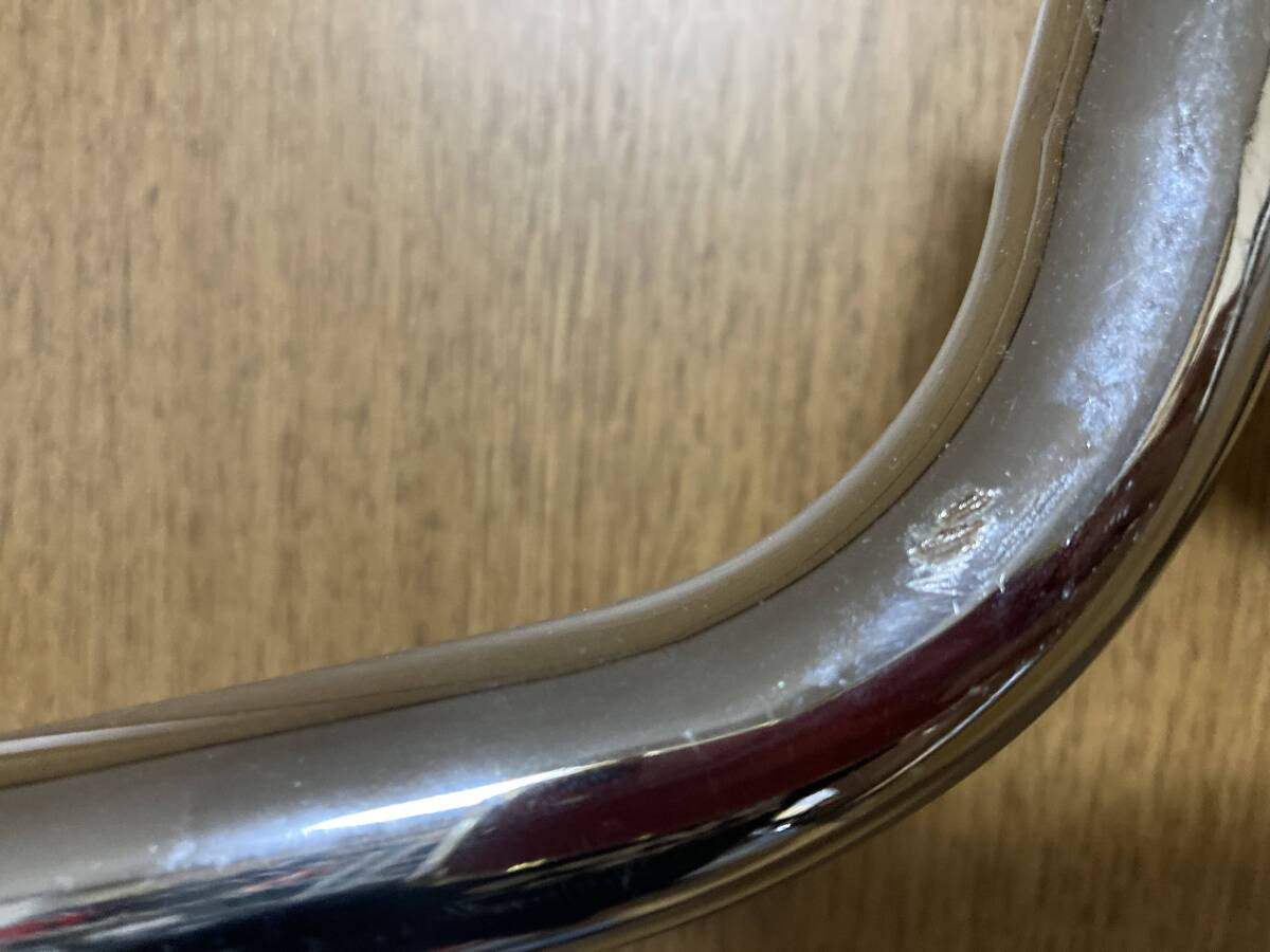 MISTYさんのMISTY金太郎ハンドルはスチールメッキ仕上げです〈サイズ W62㎝。取り付けていた際についた傷が裏側に2箇所ついております(写真参)取り付ければ目立たないと思います。
