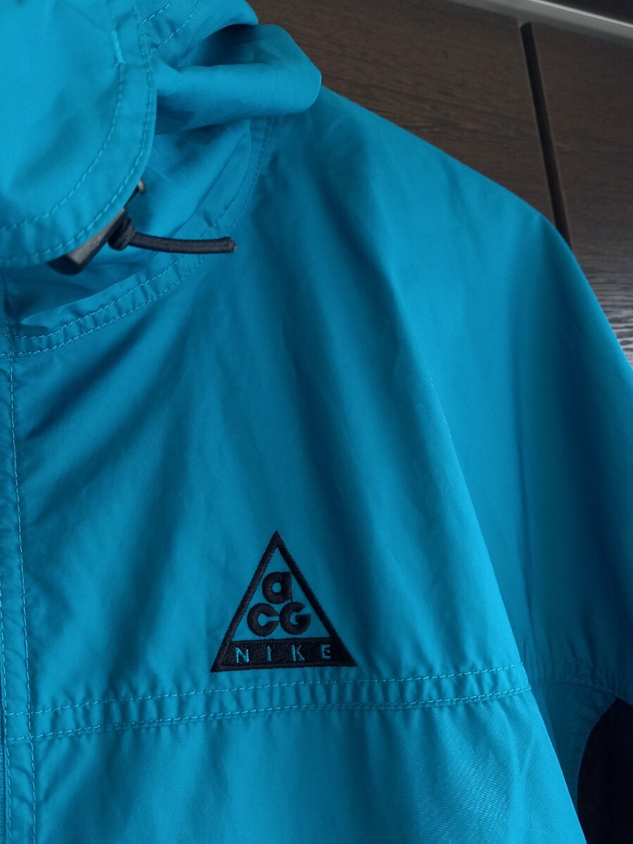 90s NIKE ACG ナイキ アノラック ナイロン プルオーバー ビンテージ マウンテンパーカー ターコイズ×ブラック サイズLです。身幅約64着丈約78センチです。状態は使用感も少なくビンテージにしては全体的に良い状態だと思います。必ず当方の自己紹介欄を見てから質問、入札、落札してください。