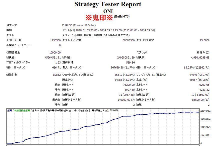 FXツール★掲載更新 ドル円1分足超速短期決済型自動売買EA鬼.ex4 13年間極小ドローダウン(検)USDJPYスキャルピングバイナリーオプションMT4