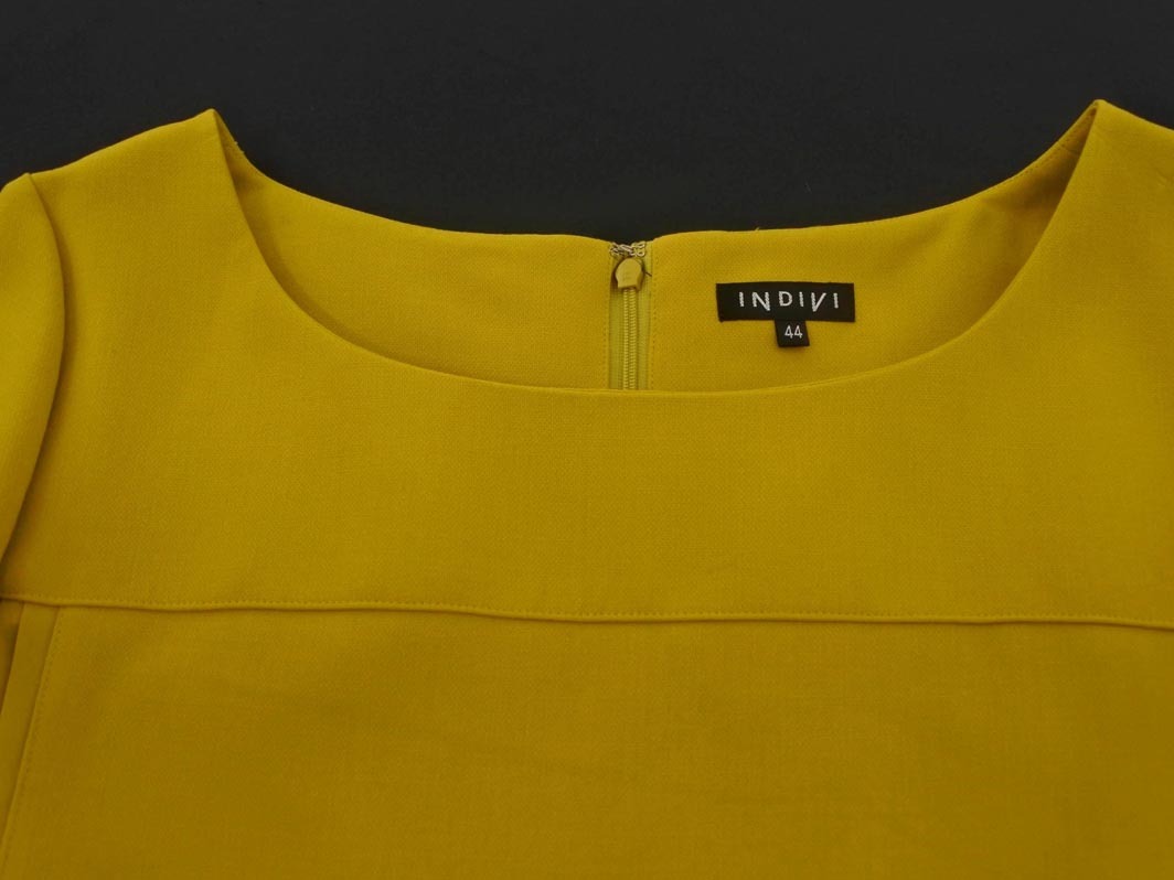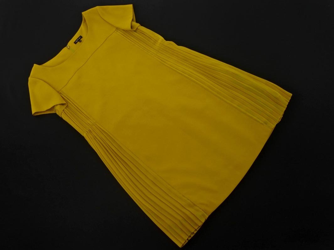 Product name: INDIVI インディヴィ シフォン プリーツ 大きいサイズ 切替 Iライン ワンピース size44/マスタード ■◇ ☆ fgc1 レディース