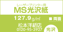 レーザープリンター用の両面光沢紙です。両面の光沢紙ですので社内パンフレットや商品案内などに最適です。「カラーレーザープリンターを使って光沢紙に出力したい。」という要望にお応えして販売しているMS光沢シリーズです。社内パンフ・商品紹介・ハガキなどの印刷を 社内でスピーディーにすることができます。