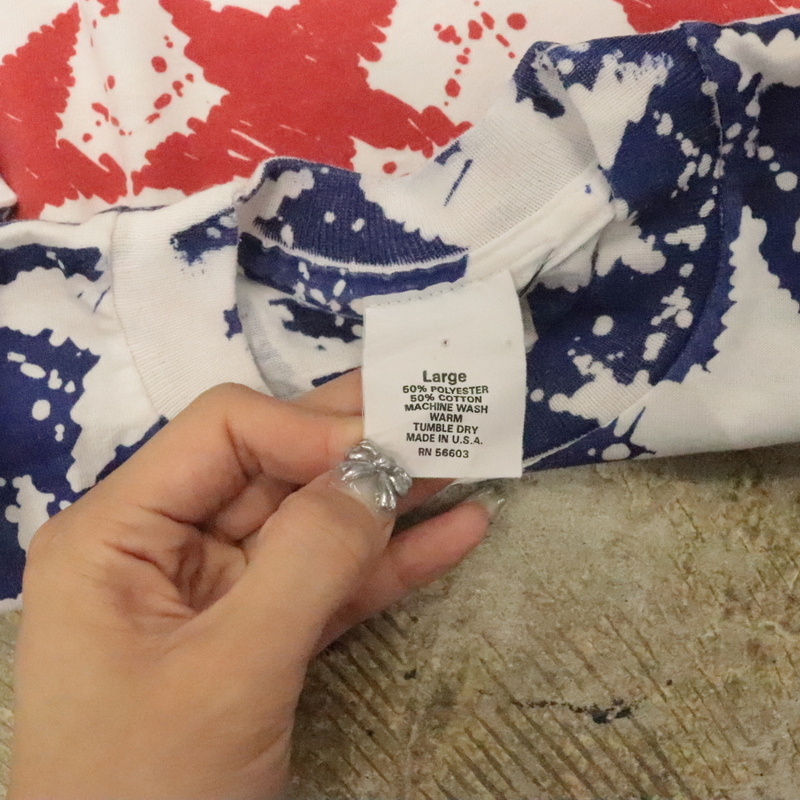 Product name: KD488 キッズ 子供服 90sビンテージ 総柄 プリントTシャツ USA製■1990年代製 表記Lサイズ アメカジ ストリート サイケ アンティーク 80s