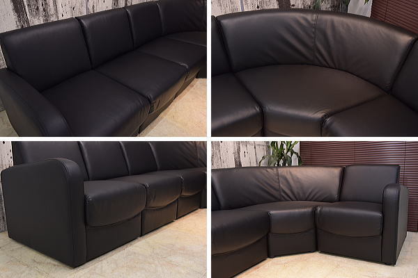 Product name: 新品 モダン応接コーナーソファ5点セットBK色 リビングレザー家具ソファー快適おしゃれ置きやすいスッキリ激安 事務所:NW20H11