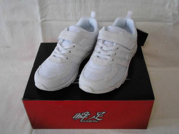 瞬足 094 22cm ホワイト 男女ジュニア兼用 ひも付き マジックタイプ スニーカー 白 通学に、校内ばきに スポーツに