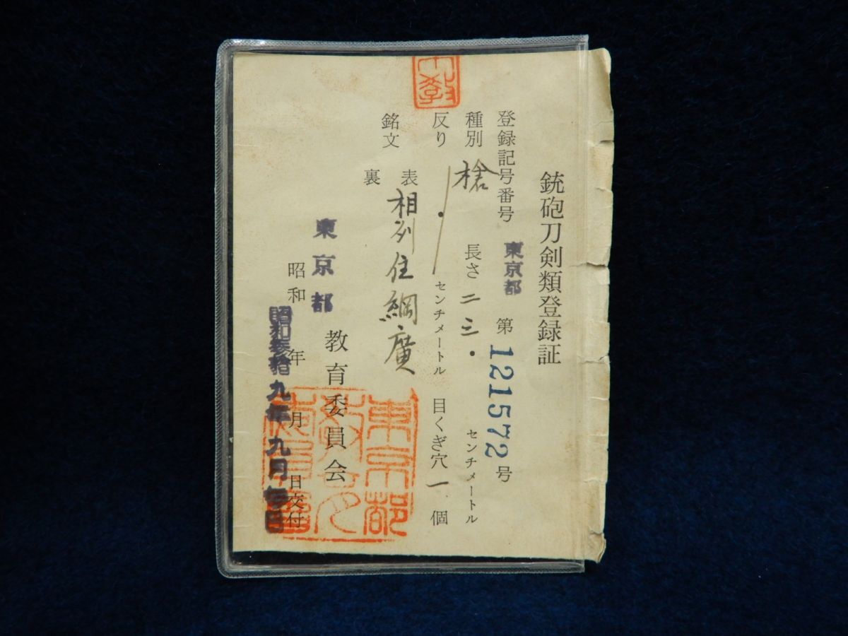 Product name: ★槍 在銘 相州住綱廣 登録証付★武具/刀装具/刀剣部品/消費税0円