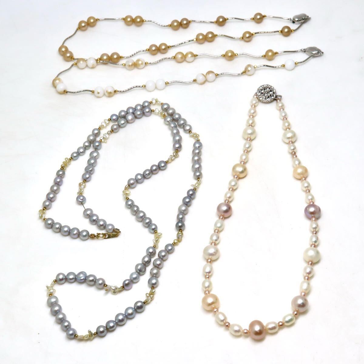 Product name: K18入り!!約3.0-10.5mm珠◆本真珠ネックレス2点/パールネックレス2点おまとめ◆A 約96.9g pearl パール necklace jewelry DI0/EA2 W502