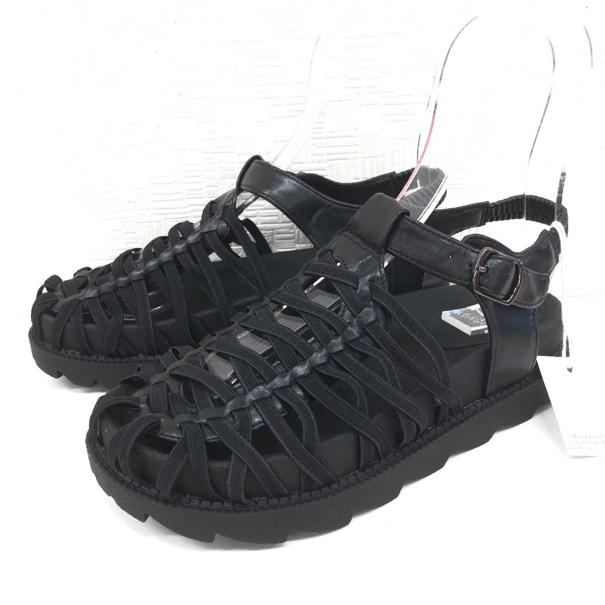 Product name: ●新品 byあしながおじさん 定価8,690円 グルカ風 メッシュ スポーツサンダル M(23.5cm) 黒 ブラック スポサン 厚底 未使用 レディース