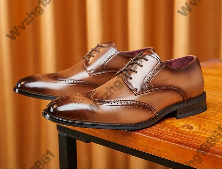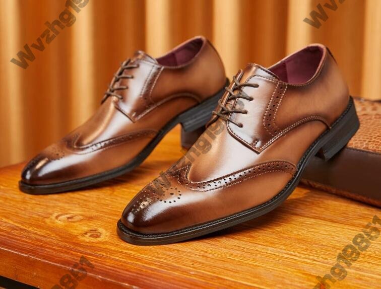 英倫靴男性尖頭系本革ビジネス正装靴ブラウン婚靴青年靴