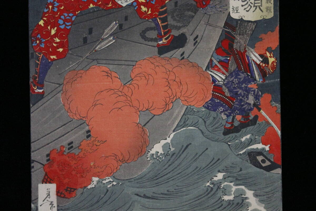 Product name: 【真作】 浮世絵 月岡芳年 木版画 『芳年武者无類 九郎判官源義経 能登守教経』 33×22cm 台紙張 余白無 03404083-30
