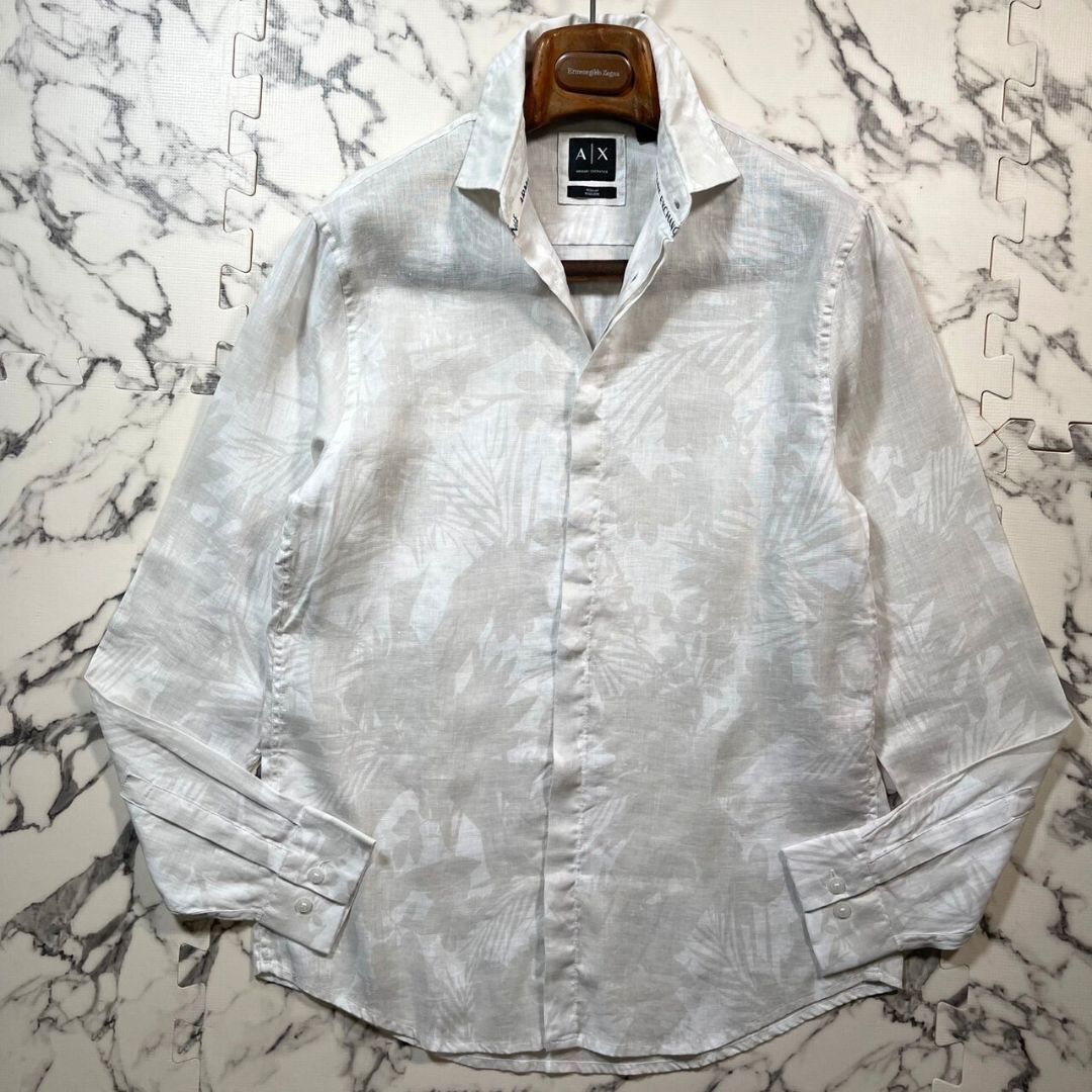 Product name: 極美品/リネン100%/花柄 ●ARMANI EXCHANGE 長袖 麻 シャツ ボタニカル アルマーニ ベージュ 白 フラワー 薄手 春夏 メンズ M位 ジャケット