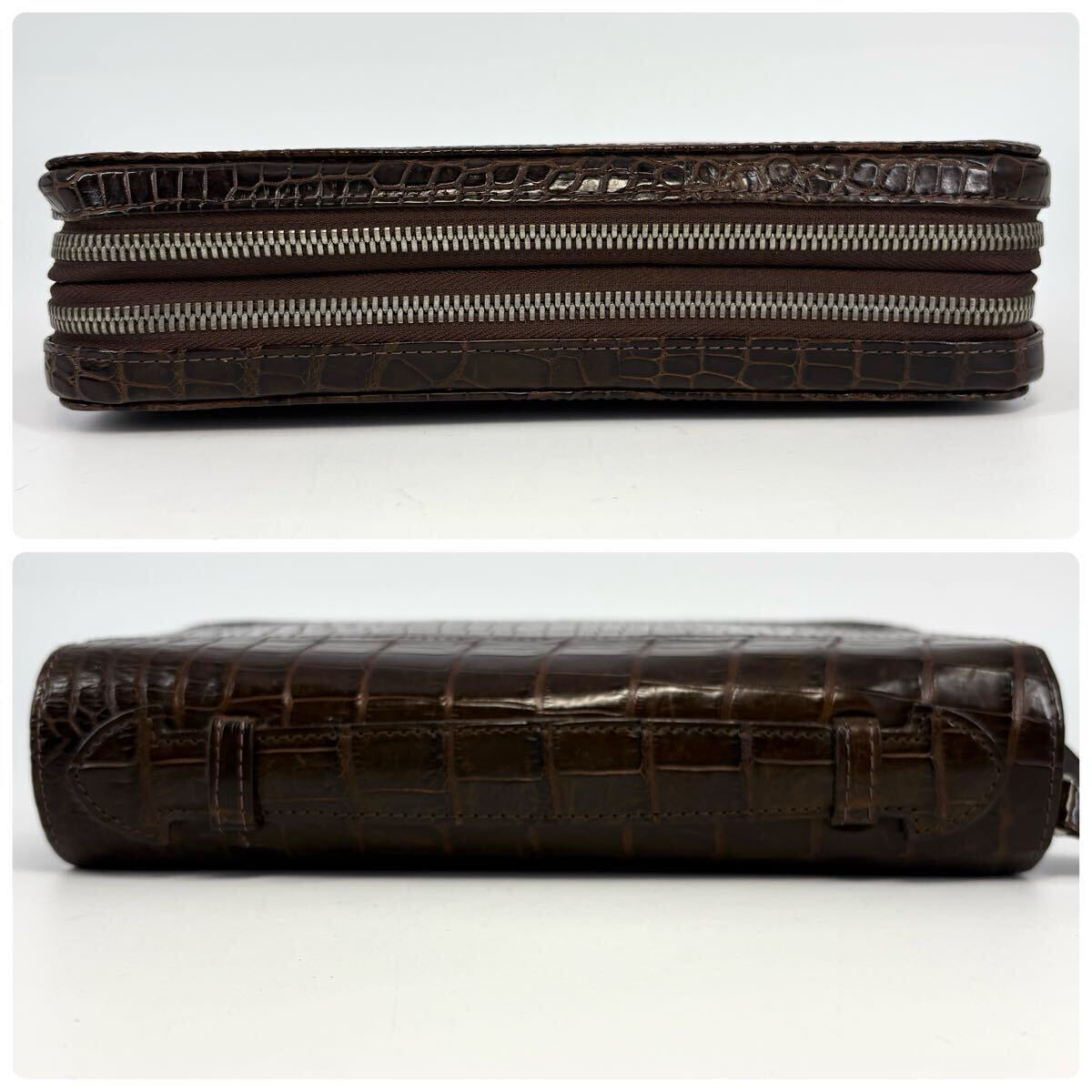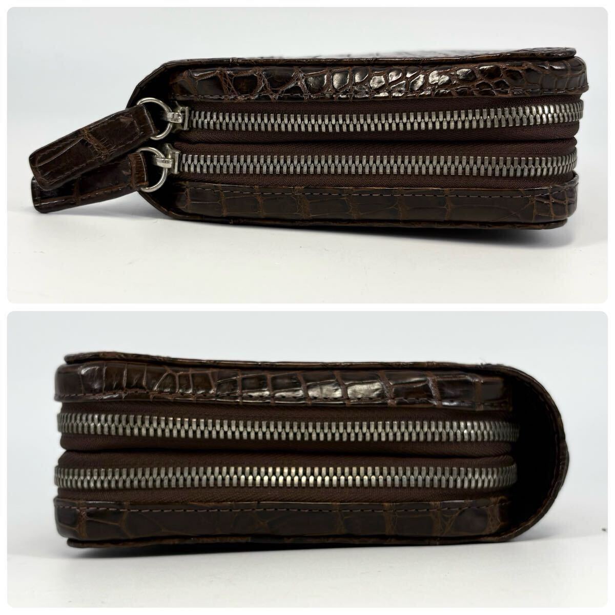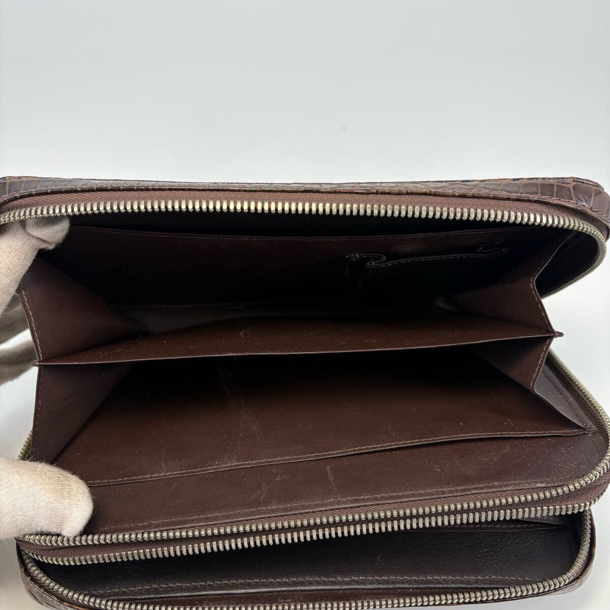 定価20万/美品!!! クロコダイル オーガナイザー 長財布 クラッチバッグ セカンド ダブルファスナー ウォレット ビジネス メンズ センター