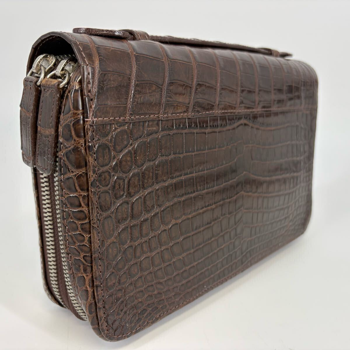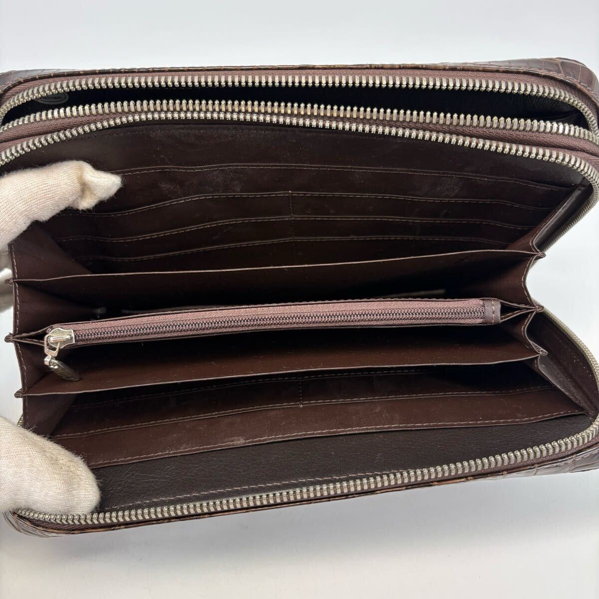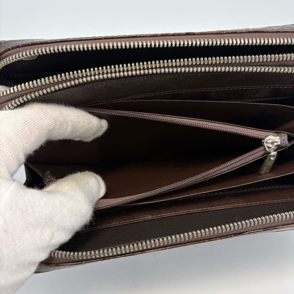 定価20万/美品!!! クロコダイル オーガナイザー 長財布 クラッチバッグ セカンド ダブルファスナー ウォレット ビジネス メンズ センター