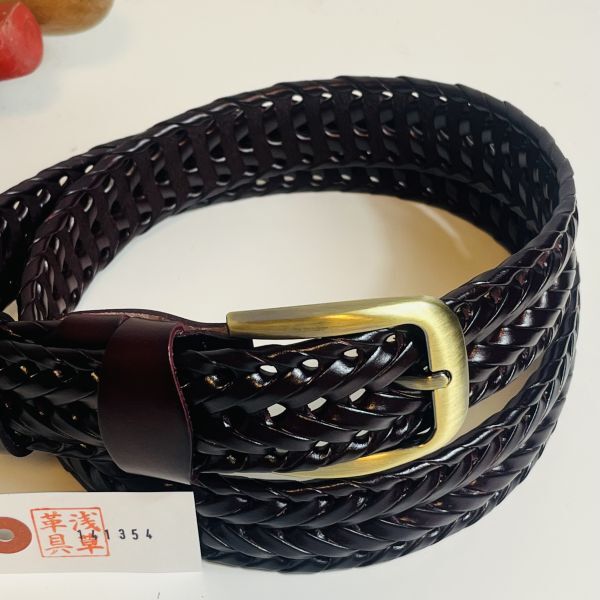 Product name: 【浅草革具】フリーサイズ メンズ ベルト 編み込み イタリアンレザー 牛革 カジュアル 新品 未使用 男性 1円 レザー 無段階調整 ブラウン