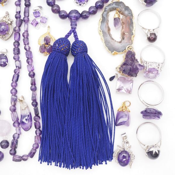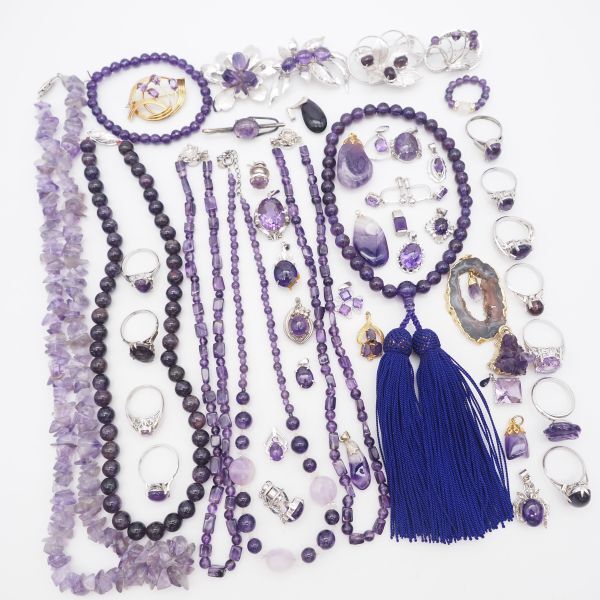 (AJ0801) 1円 アメジスト アクセサリー 大量セット ネックレス ブレスレット ペンダントトップ イヤリング ブローチ 指輪 等 まとめて